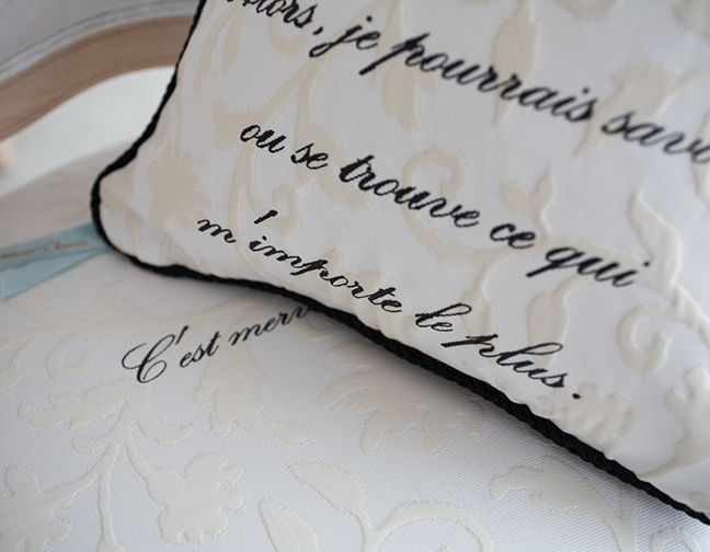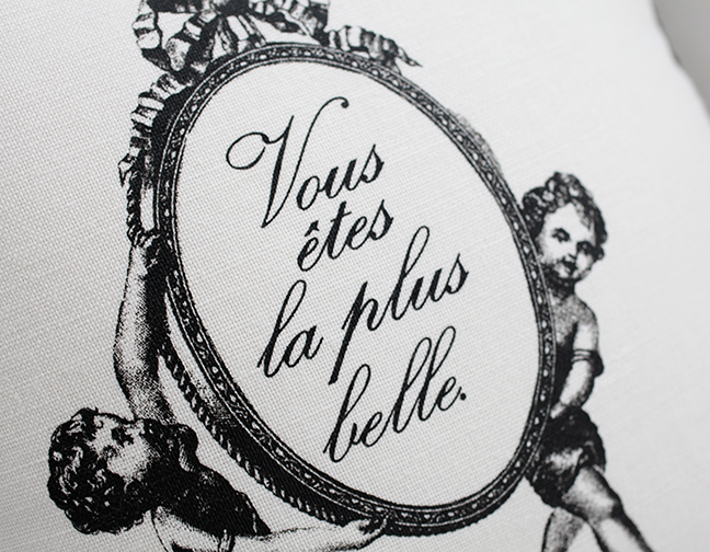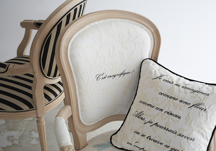 いずれもフランス語のシルクプリントが施されています。