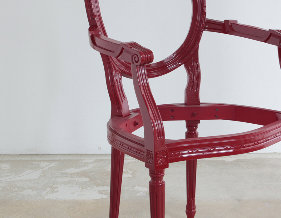 フレームは樹脂を吹き付け、ピアノ塗装のような艶を出したウレタン塗装仕上(アカ:D05-30T)になります。